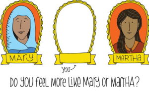 Jesus came to a village, and a woman named Martha welcomed him into her house. She had a sister called Mary, who sat down at the Lord’s feet and listened to him speaking. Now Martha who was distracted with all the serving said, ‘Lord, do you not care that my sister is leaving me to do the serving all by myself? Please tell her to help me.’ But the Lord answered: ‘Martha, Martha,’ he said ‘you worry and fret about so many things, and yet few are needed, indeed only one. It is Mary who has chosen the better part; it is not to be taken from her.’